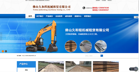 建筑設備租賃網(wǎng)站建設作品賞析之佛山久和程機械租賃有限公司