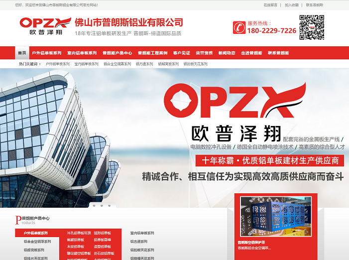 鋁方通網(wǎng)站建設(shè)作品賞析之佛山市普朗斯鋁業(yè)有限公司
