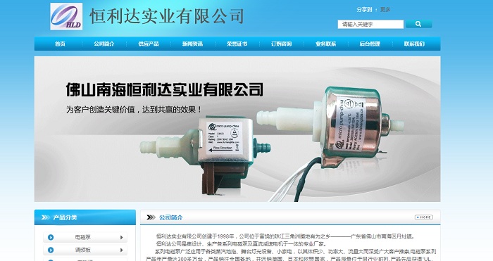 廣東省佛山市南海恒利達(dá)實(shí)業(yè)有限公司創(chuàng)立于1998年,是一家生產(chǎn)系列電磁泵、直流減速電機(jī)的專業(yè)廠家。本廠技術(shù)力量雄厚、設(shè)備先進(jìn),年產(chǎn)各類產(chǎn)品達(dá)500萬臺(tái),產(chǎn)品暢銷國內(nèi)外。 系列電磁泵廣泛用于蒸汽地拖舞臺(tái)、煙霧發(fā)生器、蒸汽清潔器、小型咖啡機(jī)、醫(yī)療護(hù)理器具等產(chǎn)品上。其電磁泵電壓﹑流量可按客戶要求制作; 直流電機(jī)主要應(yīng)用于各種小家電、小控制設(shè)備、禮品工藝品等產(chǎn)品。其性能參數(shù)及驅(qū)動(dòng)軸的規(guī)格可按客戶要求制作。