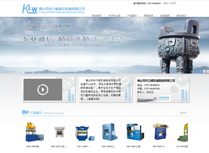 拉伸機(jī)網(wǎng)站設(shè)計(jì)作品賞析之佛山市科力威液壓機(jī)械有限公司
