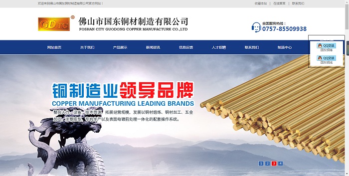 南海網(wǎng)站制作作品案例賞析之佛山市國(guó)東銅材制造有限公司