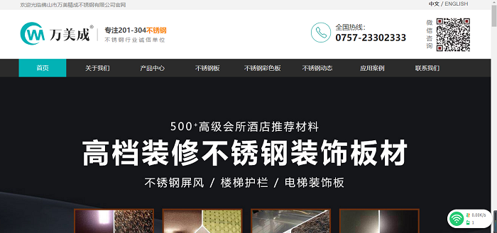 佛山市萬美精成不銹鋼有限公司座落于中國著名的不銹鋼生產(chǎn)基地——廣東省佛山市。成立以來一直致力于“成為全球最優(yōu)質(zhì) 不銹鋼供應(yīng)商”,在產(chǎn)品品質(zhì)管理、營銷服務(wù)體系建設(shè)等方面不懈追求完美,誠信經(jīng)營,現(xiàn)已發(fā)展成在國內(nèi)外具有重要影響力的大型不銹鋼企業(yè)。
