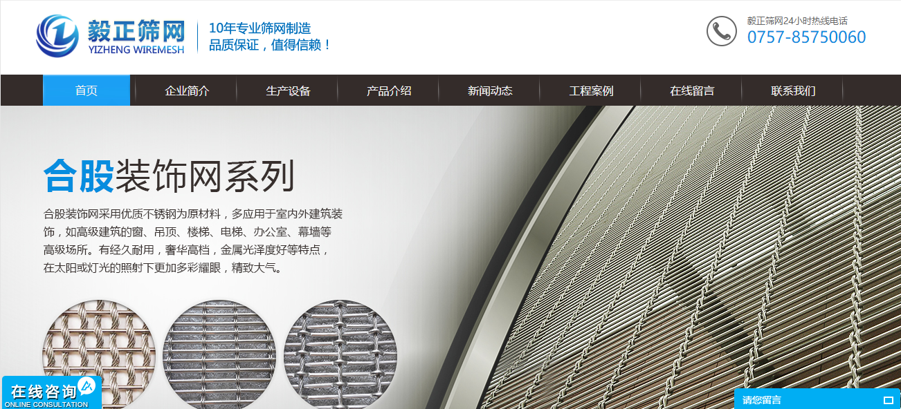 今天讓我們一起來分享一下金屬裝飾網(wǎng)網(wǎng)站建設(shè)作品:佛山市毅正篩網(wǎng)制造有限公司