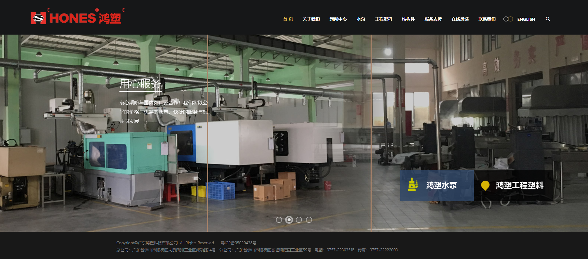 今天讓我們一起來分享一下水泵網(wǎng)站推廣作品:廣東鴻塑科技有限公司(原廣東順德鴻塑高分子材料有限公司),為高新技術企業(yè), 位于廣東省佛山市順德大良鳳翔工業(yè)區(qū)成功路(總公司)和廣東省佛山市順德區(qū)杏壇鎮(zhèn)雁園工業(yè)區(qū)(分公司),公司占地35000平方米,建筑面積28000平方米, 北連廣州、南接珠海和港澳、鄰近京珠高速和105國道,交通便利。公司業(yè)務主要有三大經(jīng)營模塊:工程塑料事業(yè)部、水泵事業(yè)部、結構件注塑車間。主要生產(chǎn)、研發(fā)、銷售PPS為主的改性工程材料、精密結構件、注塑加工各類工農(nóng)業(yè)水泵。公司已通過ISO9001-2008、TS16949質(zhì)量管理體系認證,SGS認證及美國UL安全標準認證。