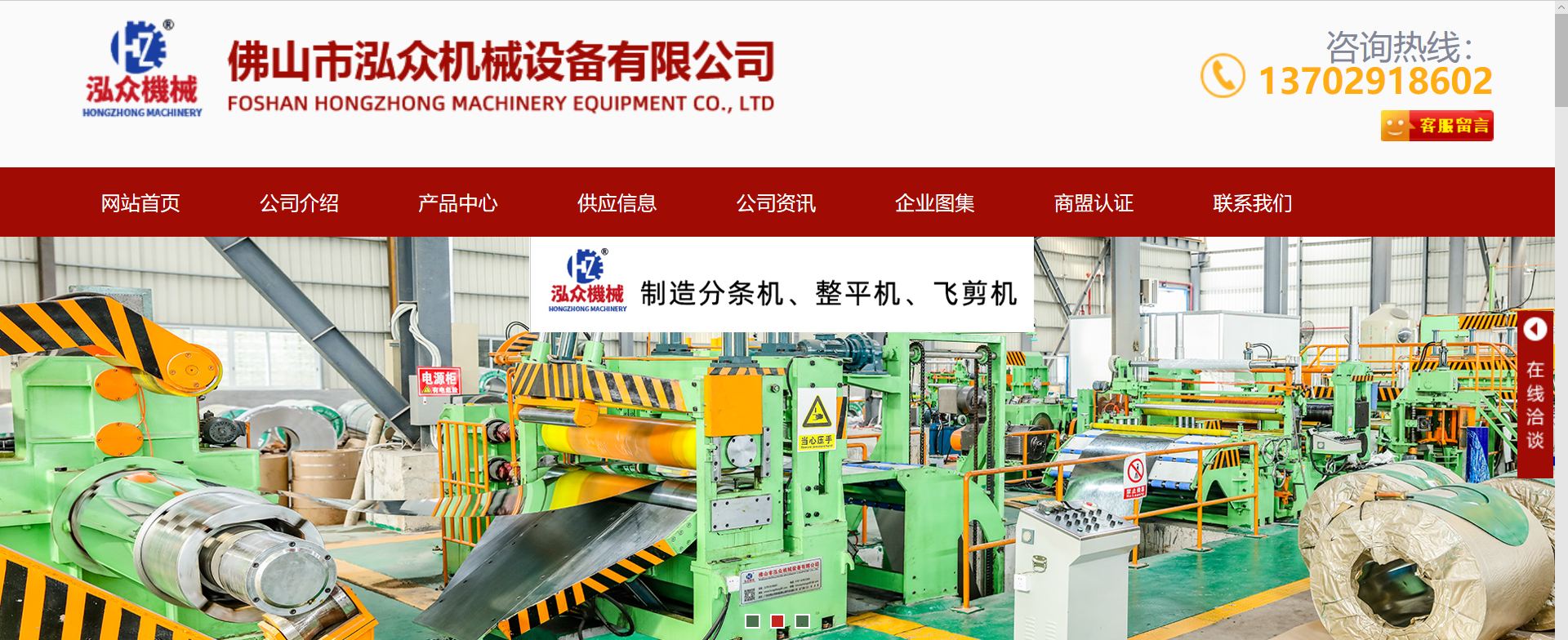 今天讓我們一起來(lái)分享一下飛剪機(jī)網(wǎng)站建設(shè)作品:佛山市泓眾機(jī)械設(shè)備有限公司是引進(jìn)臺(tái)灣技術(shù),集設(shè)計(jì)、研發(fā)、生產(chǎn)、銷售、出口貿(mào)易及配套服務(wù)于一體的金屬整平橫剪機(jī)、縱剪分條機(jī)、高速飛剪機(jī)組的機(jī)械設(shè)備制造商。泓眾機(jī)械坐落于中國(guó)不銹鋼貿(mào)易集散地——佛山,東倚廣州、南鄰香港、澳門(mén)。憑借著得天獨(dú)厚的地理優(yōu)勢(shì);雄厚技術(shù)力量;高效的管理團(tuán)隊(duì)和強(qiáng)大的銷售服務(wù)能力,公司得以迅速發(fā)展,產(chǎn)品服務(wù)輻射全國(guó)并遠(yuǎn)銷東南亞、印巴、中東、南美各地。泓眾機(jī)械擁有一支多年從事金屬行業(yè)飛剪機(jī),整平橫剪機(jī)和縱剪分條機(jī)研發(fā)、管理、生產(chǎn)和銷售的專業(yè)團(tuán)隊(duì)。公司嚴(yán)格執(zhí)行ISO90012008質(zhì)量管理體系標(biāo)準(zhǔn)要求。經(jīng)過(guò)多年的創(chuàng)新與發(fā)展,建立起遍布國(guó)內(nèi)外的銷售體系。優(yōu)良的設(shè)備質(zhì)量和完善的售后服務(wù)體系為公司贏得了大批忠實(shí)客戶,更獲得業(yè)界及權(quán)威機(jī)構(gòu)的高度認(rèn)可。泓眾機(jī)械奉行“為客戶提供至精至誠(chéng)的優(yōu)質(zhì)服務(wù)、為員工創(chuàng)造公平就業(yè)和成長(zhǎng)空間、為社會(huì)創(chuàng)造金屬行業(yè)和諧的市場(chǎng)環(huán)境”的企業(yè)使命,堅(jiān)持“以人為本,唯才善用”的人才觀,高度重視人才的培養(yǎng)及其職業(yè)生涯規(guī)劃,竭力營(yíng)造充滿活力的事業(yè)空間,攜手共創(chuàng)未來(lái)。“篤實(shí)誠(chéng)信、追求卓越、合作共贏、永續(xù)發(fā)展”,泓眾機(jī)械與你攜手,為社會(huì)經(jīng)濟(jì)發(fā)展勇于擔(dān)綱,共創(chuàng)美好未來(lái)。