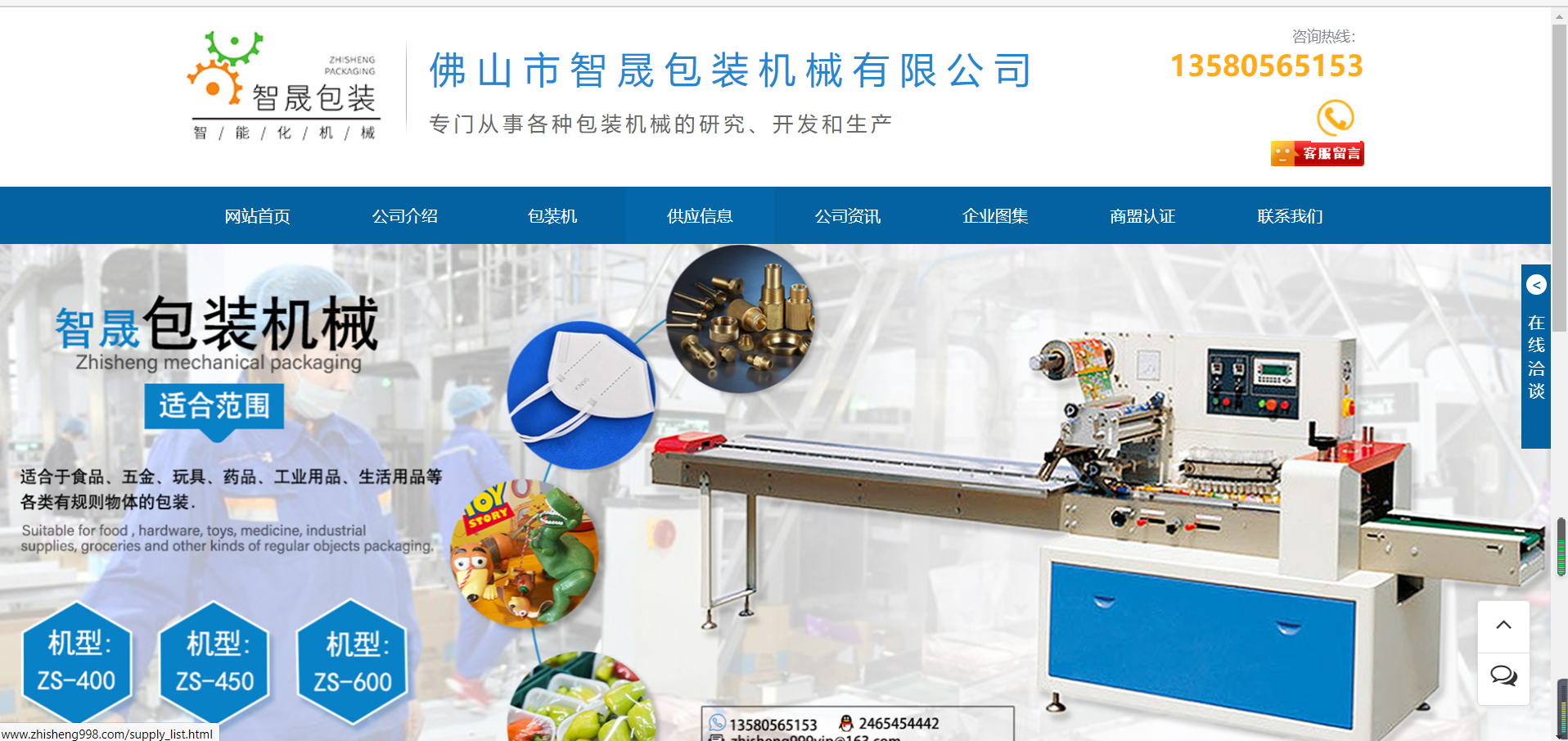 佛山市智晟包裝機(jī)械有限公司位于廣東佛山,專門從事各種包裝機(jī)械的研究、開發(fā)和生產(chǎn)(如:紙巾包裝機(jī),軟抽包裝機(jī),卷紙包裝機(jī),面包包裝機(jī),枕式包裝機(jī),顆粒包裝機(jī),食品包裝機(jī),月餅包裝機(jī),水果包裝機(jī),臍橙包裝機(jī),檸檬包裝機(jī),鋁管包裝機(jī),不銹鋼包裝機(jī),醫(yī)1用品包裝機(jī),日用品包裝機(jī),五金用品包裝機(jī),塑料品包裝機(jī),一次用品包裝機(jī),酒店用品包裝機(jī),工藝品包裝機(jī),多功能包裝機(jī),全自動(dòng)包裝機(jī)等等)。先進(jìn)的設(shè)計(jì)理念與專業(yè)的技術(shù)一直是智晟的顯著特點(diǎn),完備的加工體系,嚴(yán)謹(jǐn)周到的售后服務(wù)管理,智晟在業(yè)界已贏得良好的聲譽(yù)。產(chǎn)品研發(fā)方面:我廠自創(chuàng)建以來(lái)成功開發(fā)制造了多個(gè)系列,幾十個(gè)品種的包裝機(jī)械和配套設(shè)備。積累了豐富的專業(yè)知識(shí)和實(shí)踐經(jīng)驗(yàn),形成富有特色的粉粒物料包裝系統(tǒng)工程理論和精辟的解決方案??梢愿鶕?jù)企業(yè)的投資狀況,生產(chǎn)實(shí)際,和客戶的要求進(jìn)行方案設(shè)計(jì),是真正意義上轉(zhuǎn)交客戶的交鑰匙工程。員工素質(zhì)方面:?jiǎn)T工隊(duì)伍強(qiáng)大業(yè)務(wù)素質(zhì)精良,具備整體項(xiàng)目的設(shè)計(jì)開發(fā),生產(chǎn)制造,安裝調(diào)試,售后服務(wù)等諸多方面的綜合能力。售后服務(wù)方面:我們以先進(jìn)的專業(yè)技術(shù)和優(yōu)良售后服務(wù)為客戶解決一切后顧之憂,一旦承諾,終身相隨。技術(shù)合作方面:長(zhǎng)期以來(lái),智晟以“融合世界先進(jìn)科技,造就民族工業(yè)的輝煌”為己任,致力于消化,吸收并掌握加工工藝與包裝機(jī)械的前沿技術(shù)在新世紀(jì)里,我們將更加精心打造智晟的品牌形象,愿與各位同仁攜手共進(jìn),同創(chuàng)中國(guó)包裝業(yè)的輝煌。