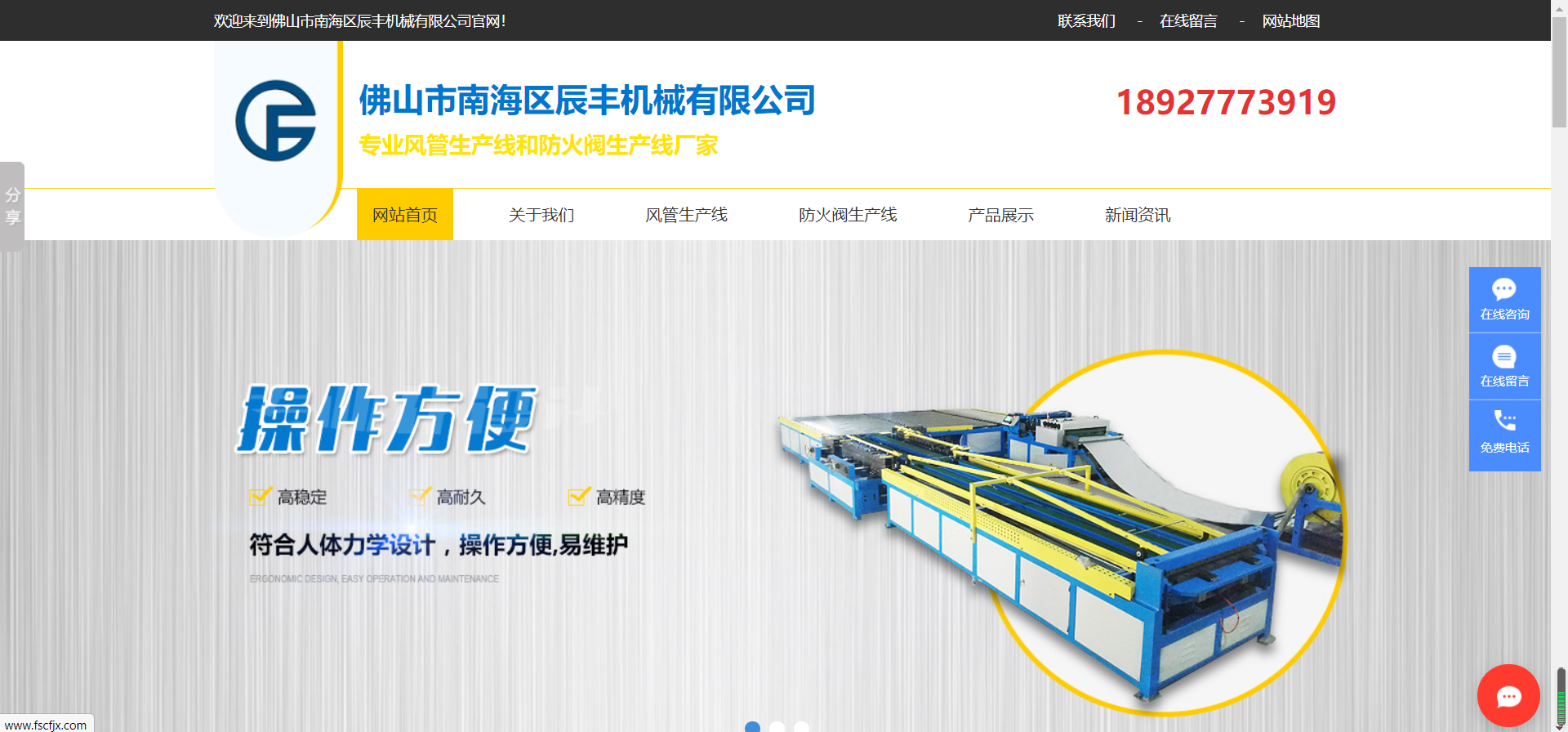 全自動(dòng)風(fēng)管生產(chǎn)線網(wǎng)站設(shè)計(jì)哪家好呢?今天讓我們一起來(lái)分享一下全自動(dòng)風(fēng)管生產(chǎn)線網(wǎng)站設(shè)計(jì)案例:佛山市南海區(qū)辰豐機(jī)械有限公司