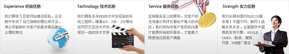 - 技術(shù)優(yōu)勢:我們擁有多年WEB技術(shù)開發(fā)經(jīng)驗的系統(tǒng)工程師,精通ASP、PHP、JSP等動態(tài)網(wǎng)頁交互技術(shù)開發(fā),保證一流的技術(shù)支持。