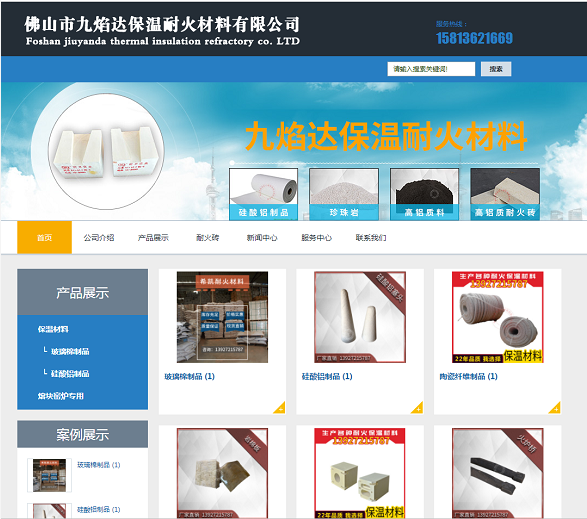 輥道窯網(wǎng)站建設(shè)作品賞析之佛山市九焰達保溫耐火材料有限公司