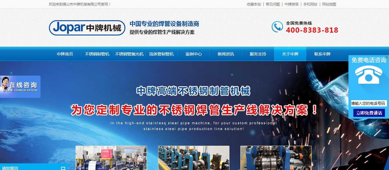 公司坐落于中國不銹鋼貿(mào)易集散地——佛山,憑借其得天獨厚的地理優(yōu)勢、以及中牌機械專業(yè)高效的管理團隊和強大的銷售服務能力,中牌機械得以迅速發(fā)展,不銹鋼制管機等產(chǎn)品及服務遠銷全中國及東南亞、歐美各地,并且推動了不銹鋼制管機械產(chǎn)業(yè)向更高、精、尖的前沿拓展。