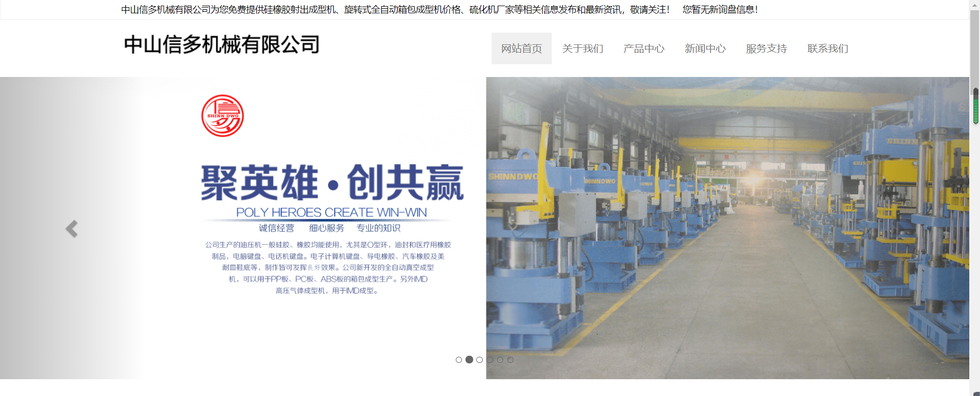 今天讓我們一起來分享一下油壓成型機(jī)網(wǎng)站設(shè)計案例:信多企業(yè)有限公司成立于1980年,經(jīng)歷30多年的實踐與開發(fā),早已成為專業(yè)制造油壓的廠商之一。董事長陳聰奇先生早年是以自動控制起家,且于1970年即以《雄兵電機(jī)有限公司》享譽于臺灣的自動控制業(yè)界。根據(jù)市場的發(fā)展,公司于1995年在馬來西亞建立分公司。相繼于1997年再到廣東建立分廠,以便滿足客戶的不斷需求。
