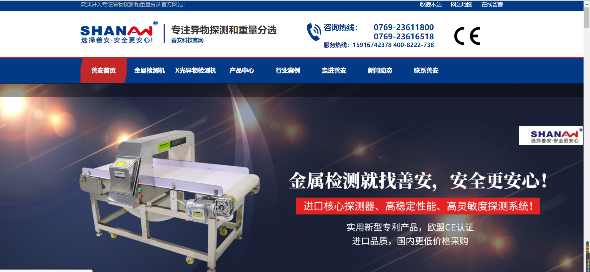 金屬檢測(cè)機(jī)網(wǎng)站建設(shè)哪家好呢?今天讓我們一起來(lái)分享一下金屬檢測(cè)機(jī)網(wǎng)站建設(shè)案例: 廣東善安科技有限公司