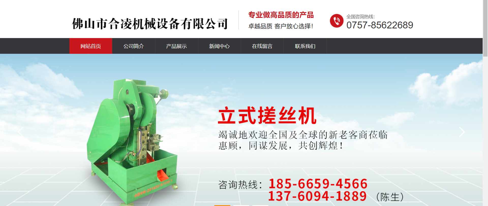 高速搓牙機(jī)網(wǎng)站設(shè)計(jì)哪家好呢?今天讓我們一起來分享一下高速搓牙機(jī)網(wǎng)站設(shè)計(jì)案例:佛山市合凌機(jī)械設(shè)備有限公司