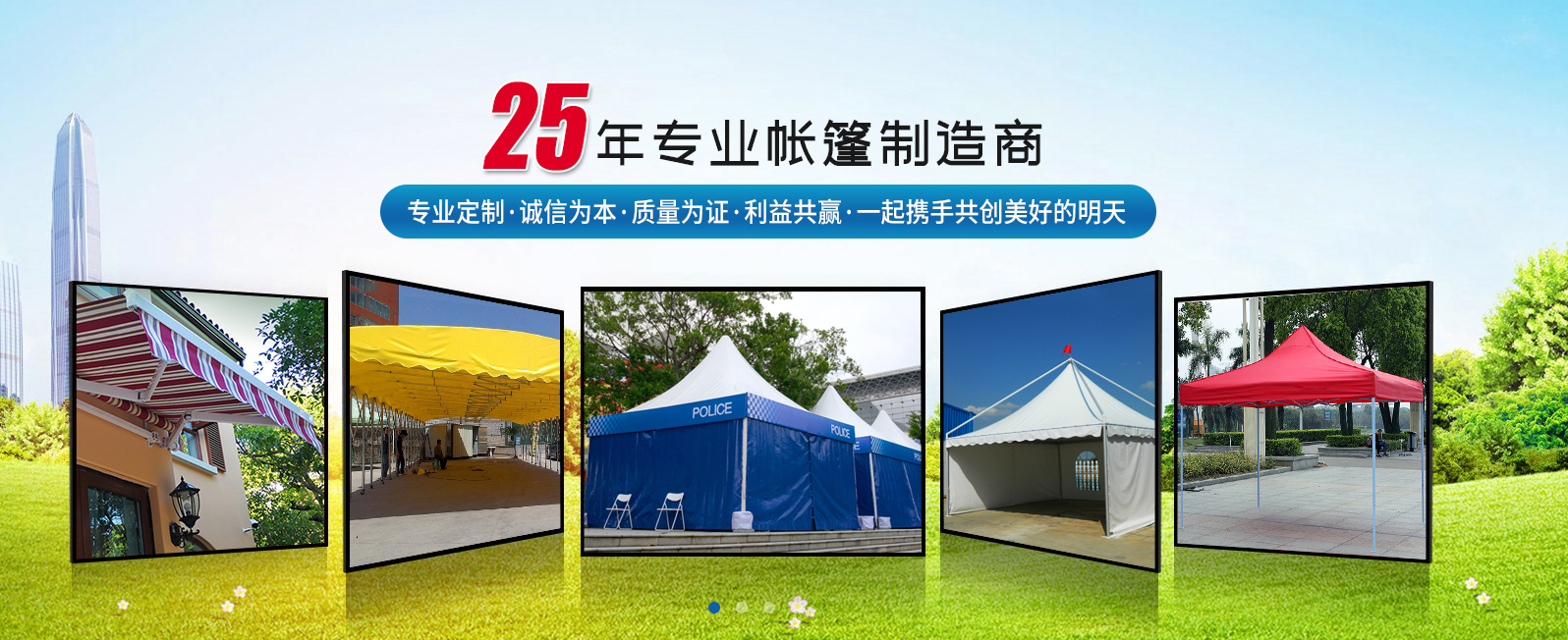 經(jīng)過十多年的開拓和發(fā)展,本公司產(chǎn)品遍布海內(nèi)外,得到了行業(yè)的高度認(rèn)可。我們的主要產(chǎn)品有手動(dòng)推拉篷、手動(dòng)軌道推拉篷、遙控電動(dòng)推拉篷、遙控電動(dòng)軌道篷,尖頂篷、篷房、單邊傘、羅馬傘、木傘、救災(zāi)帳篷、廣告帳篷、等一系列戶外遮陽(yáng)用品。