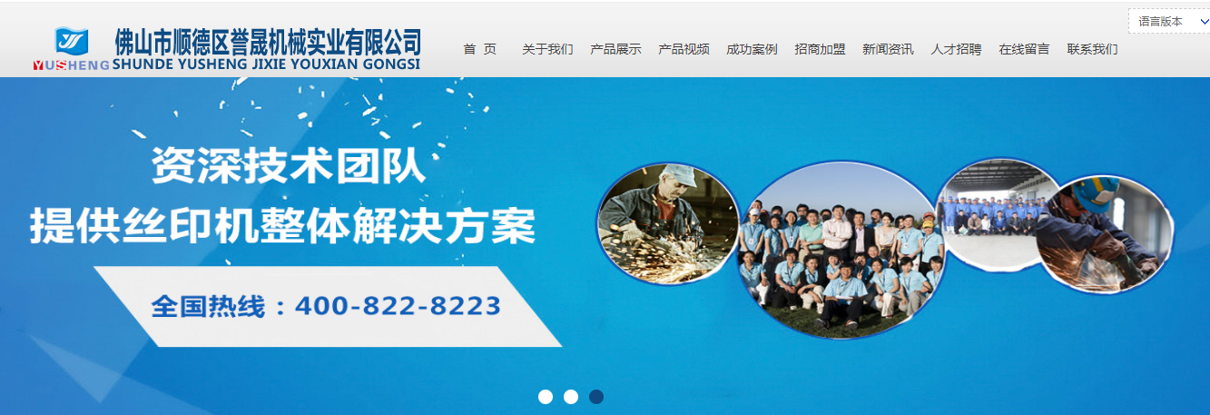 現(xiàn)在和大家一起分享廣告絲印機(jī)網(wǎng)站制作案例之佛山市順德區(qū)譽(yù)晟機(jī)械實(shí)業(yè)有限公司。