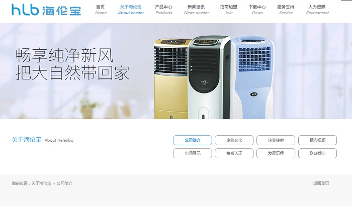 冷風(fēng)扇網(wǎng)站建設(shè)案例賞析之佛山市海倫寶電器有限公司