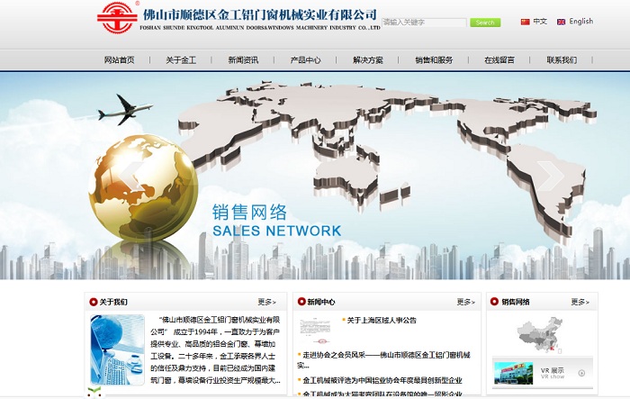 鋁門窗網(wǎng)頁設計作品賞析之佛山市順德區(qū)金工鋁門窗機械實業(yè)有限公司