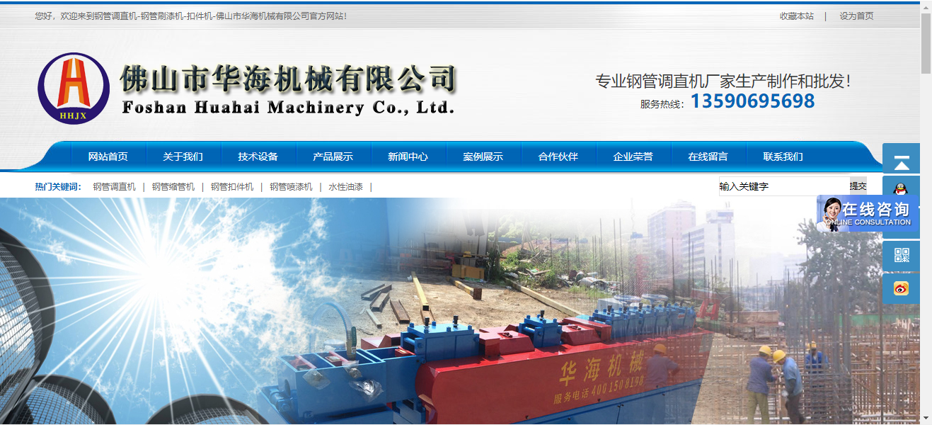 今天讓我們一起來分享一下鋼管調(diào)直機網(wǎng)站建設作品:佛山市華海機械有限公司