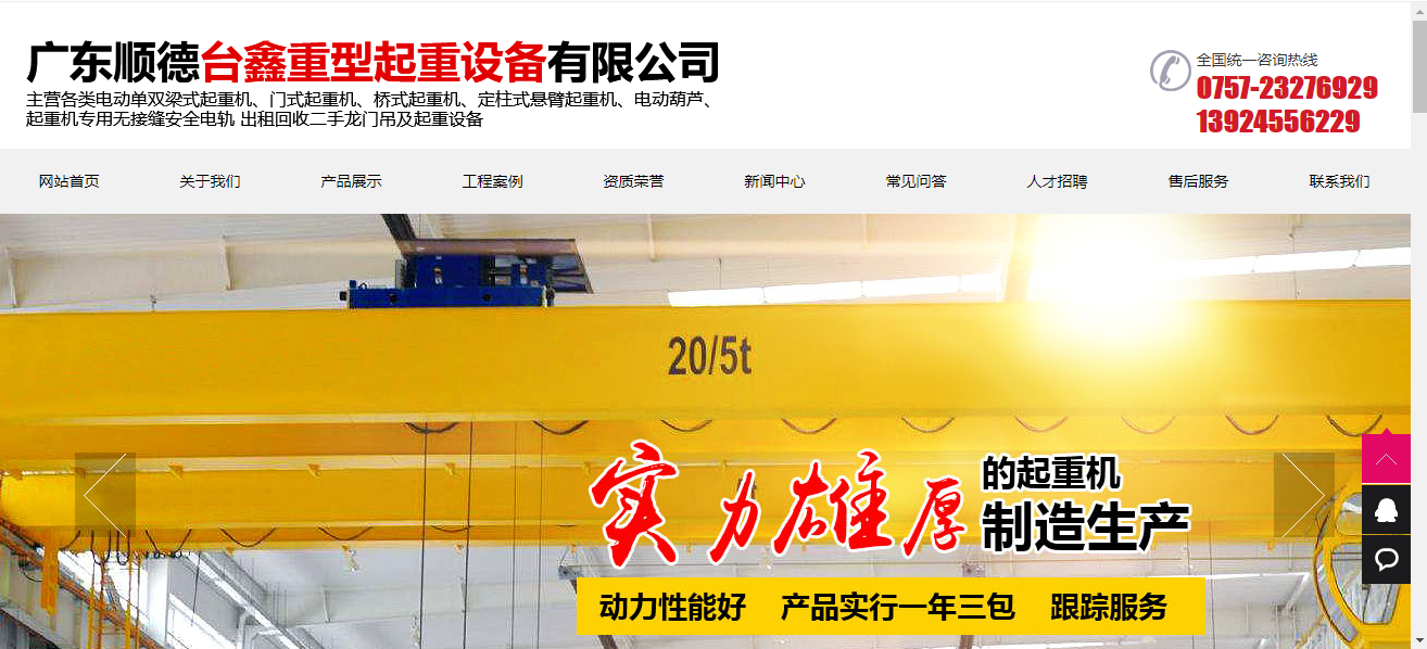 今天讓我們一起來分享一下起重設備網(wǎng)站推廣案例:廣東順德臺鑫重型起重設備有限公司
