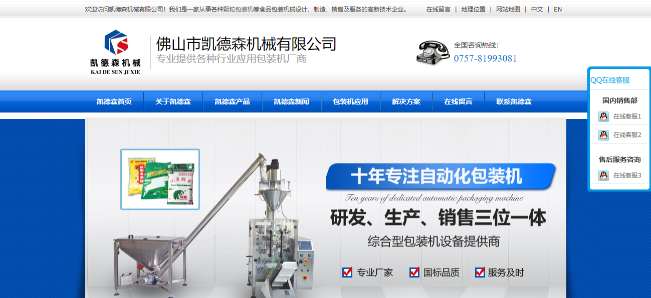 今天讓我們一起來(lái)分享一下食品包裝機(jī)械網(wǎng)站推廣作品: 佛山市凱德森機(jī)械有限公司