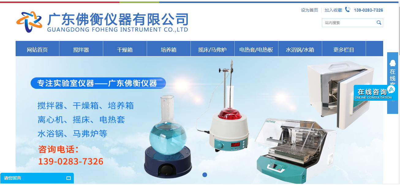 今天讓我們一起來分享一下干燥箱網(wǎng)站建設作品: 廣東佛衡儀器有限公司專注于常用實驗室科學儀器,現(xiàn)有電熱恒溫干燥箱、鼓風干燥箱、臥式干