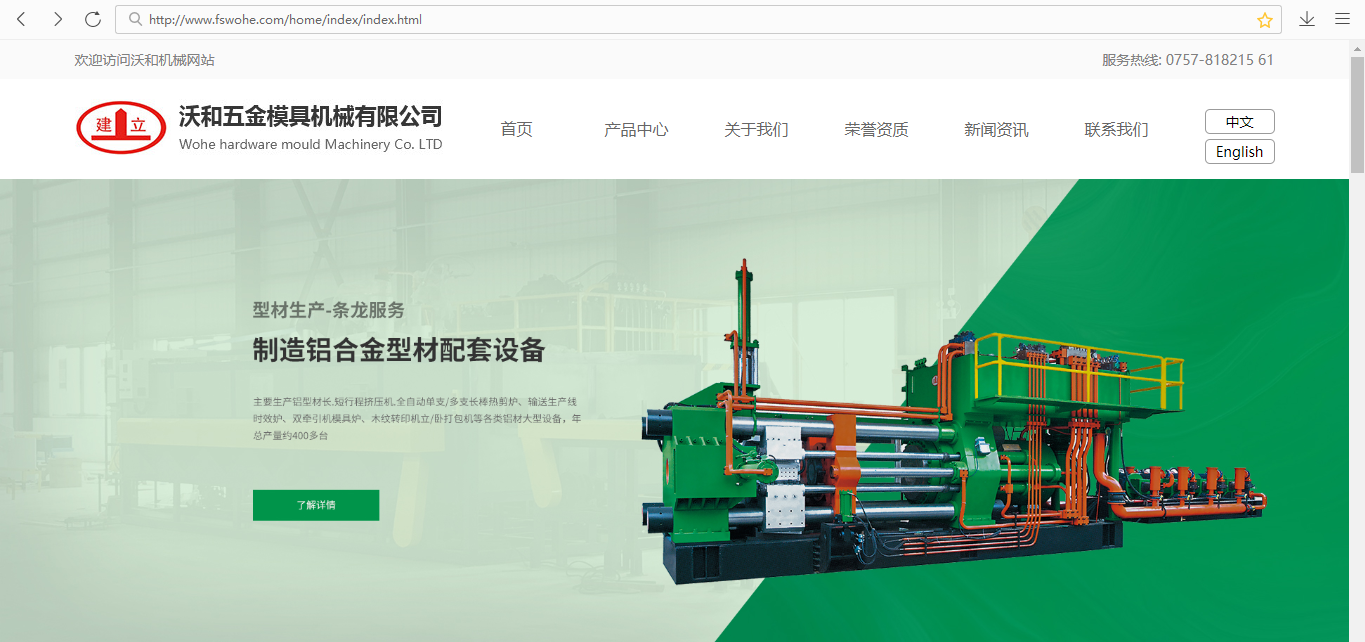 今天讓我們一起來(lái)分享一下五金模具機(jī)械網(wǎng)頁(yè)設(shè)計(jì)作品:廣東省佛山市南海沃和五金模具機(jī)械有限公司創(chuàng)立于2005年.座落于全國(guó)著名鋁材之都一(中國(guó)廣 東)佛山南海區(qū)大瀝鎮(zhèn)是-家集研制、開(kāi)發(fā)、生產(chǎn)、制造鋁合金型材配套設(shè)備的企業(yè)。隨著生產(chǎn)規(guī)模的不斷擴(kuò)展,發(fā)展到現(xiàn)在有員工100多人總占地面積1萬(wàn)多平方米。