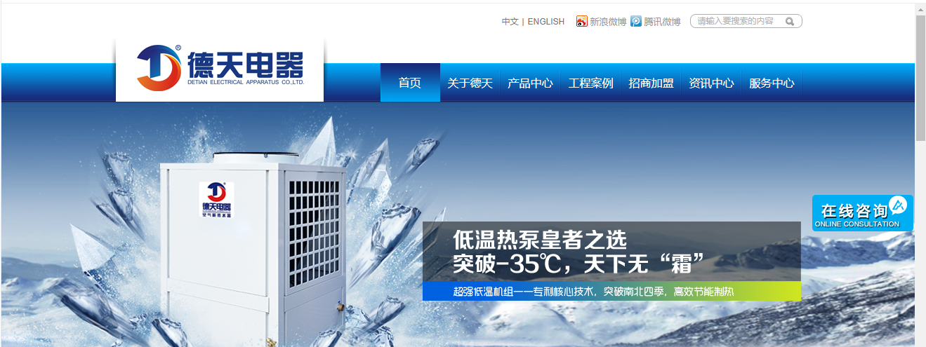 今天讓我們一起來分享一下熱泵網(wǎng)站設(shè)計案例:佛山市德天電器有限公司(以下簡稱德天電器),總部位于珠江三角洲家電之鄉(xiāng)佛山市,是一家專業(yè)從事節(jié)能環(huán)保產(chǎn)品研發(fā)、生產(chǎn)、銷售與服務(wù)為一體的國家高新技術(shù)企業(yè),專注于中國新能源環(huán)保行業(yè) - 空氣能熱水器的研發(fā)生產(chǎn)銷售服務(wù)等領(lǐng)域。