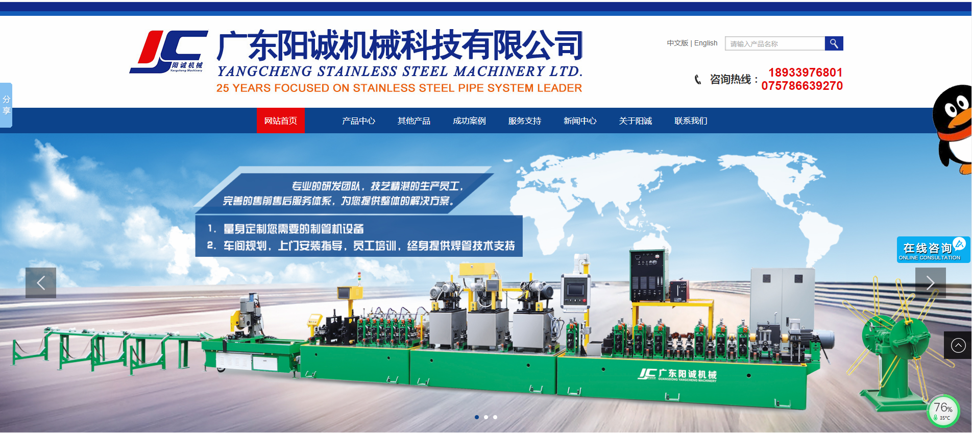 公司擁有先進(jìn)數(shù)控加工設(shè)備和經(jīng)驗(yàn)豐富(臺灣、大陸)的技術(shù)團(tuán)隊(duì),開發(fā)了一系列高端智能制管機(jī)。公司董事長陳久城先生早于1989年開始研發(fā)生產(chǎn)不銹鋼制管機(jī),憑著對國內(nèi)外領(lǐng)先焊管設(shè)備經(jīng)驗(yàn)的積累和專業(yè)創(chuàng)新的精神,使“陽誠”制管機(jī)一直緊貼市場發(fā)展,深受廣大用戶信賴