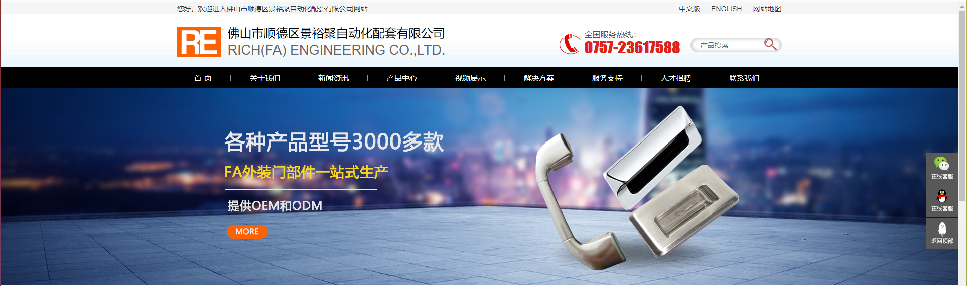 今天讓我們一起來分享一下非標(biāo)自動(dòng)化設(shè)備網(wǎng)站推廣案例:佛山市景裕聚自動(dòng)化配套有限公司是一家專業(yè)設(shè)計(jì)生產(chǎn):工業(yè)不銹鋼拉手、不銹鋼鉸鏈、磁吸(磁力扣)、支撐腳(避振腳)、工業(yè)用門鎖、滾珠、快速夾等各類工業(yè)自動(dòng)化五金件企業(yè),產(chǎn)品廣泛應(yīng)用于自動(dòng)化設(shè)備業(yè)、醫(yī)療設(shè)備、軌道交通業(yè)、通訊機(jī)柜業(yè)、五金電氣柜業(yè)、特種車輛及船舶業(yè)等