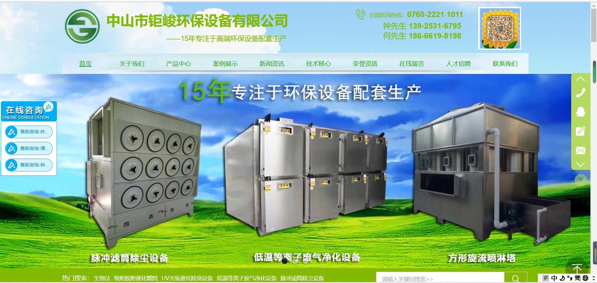 今天讓我們一起來分享一下環(huán)保設備網(wǎng)站建設案例:中山市鉅峻環(huán)保設備有限公司是專業(yè)從事工業(yè)廢氣治理、工業(yè)粉塵治理領域的咨詢、環(huán)??蒲?,致力于設計、施工制造及核心設備的研發(fā)、環(huán)保配套設備、制造和銷售的專業(yè)化公司。