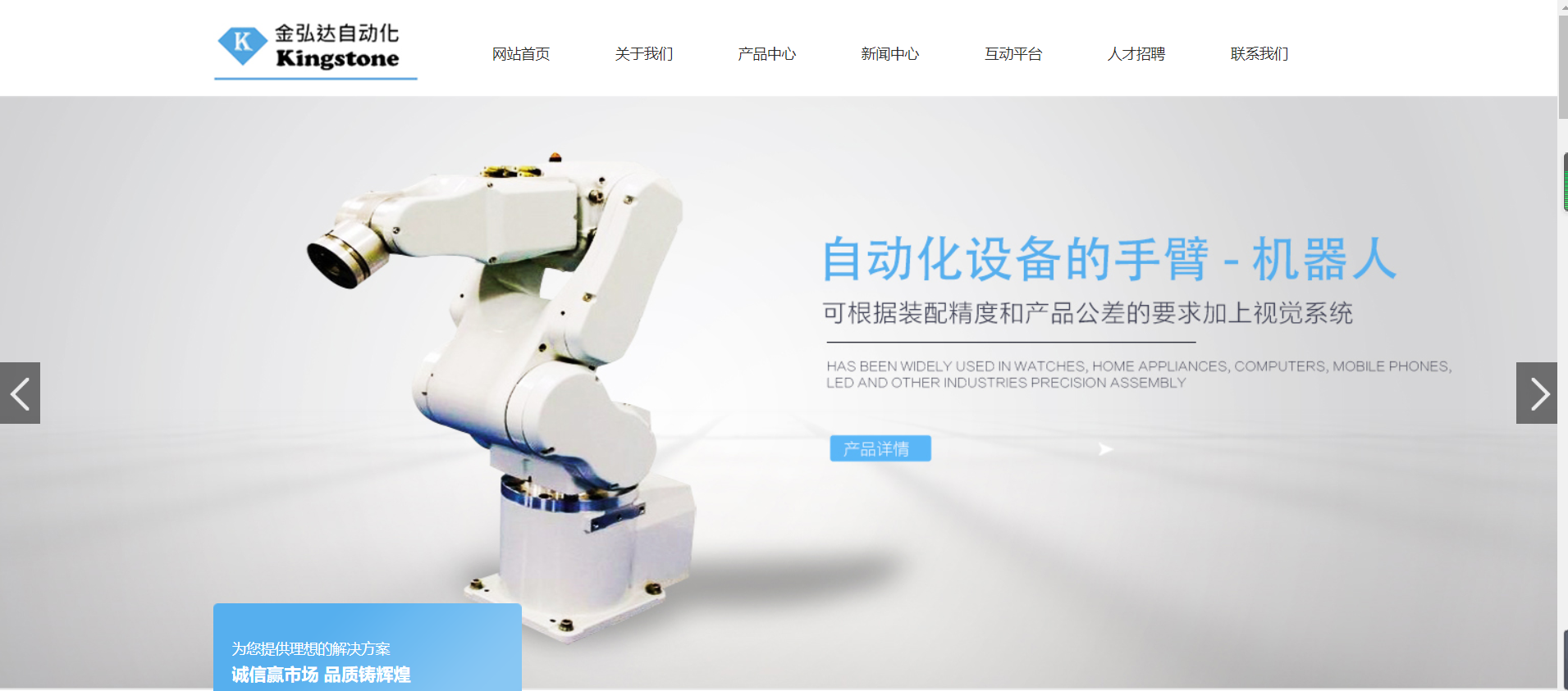 今天讓我們一起來分享一下機(jī)器人網(wǎng)站設(shè)計(jì)案例:廣東金弘達(dá)自動(dòng)化科技股份有限公司座落于中山市火炬開發(fā)區(qū),車間占地面積2500多平方米,辦公室占地面積700多平方米。