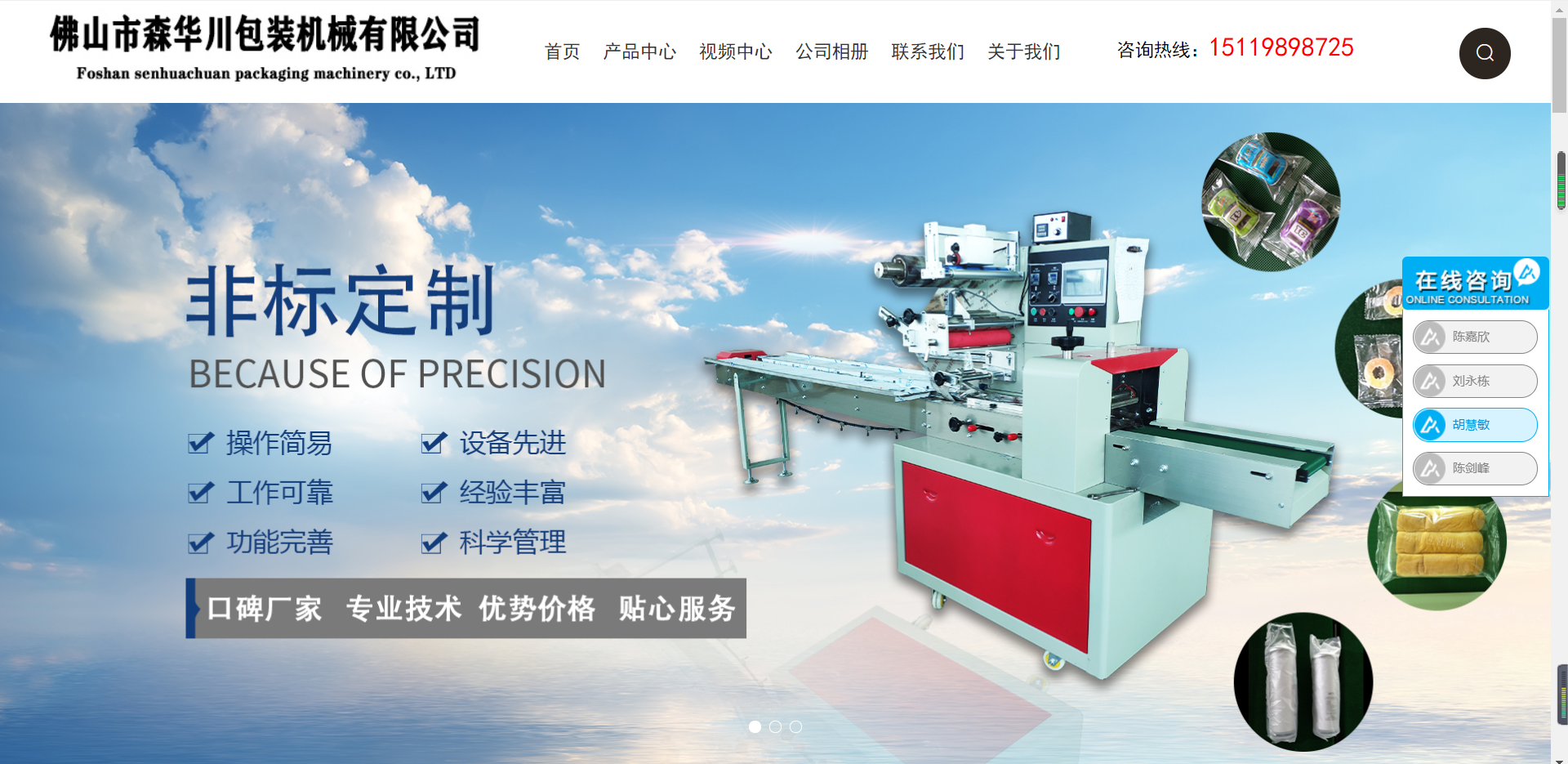 今天讓我們一起來分享一下包裝機(jī)械網(wǎng)站設(shè)計案例:佛山市森華川包裝機(jī)械有限公司坐落于華南機(jī)電制造重鎮(zhèn)——佛山市南海區(qū),距離佛山沙堤機(jī)場3公里,車程6分鐘,距離佛山高鐵西站2.5公里,車程5分鐘,緊挨二廣高速佛山站出口,交通十分便利。