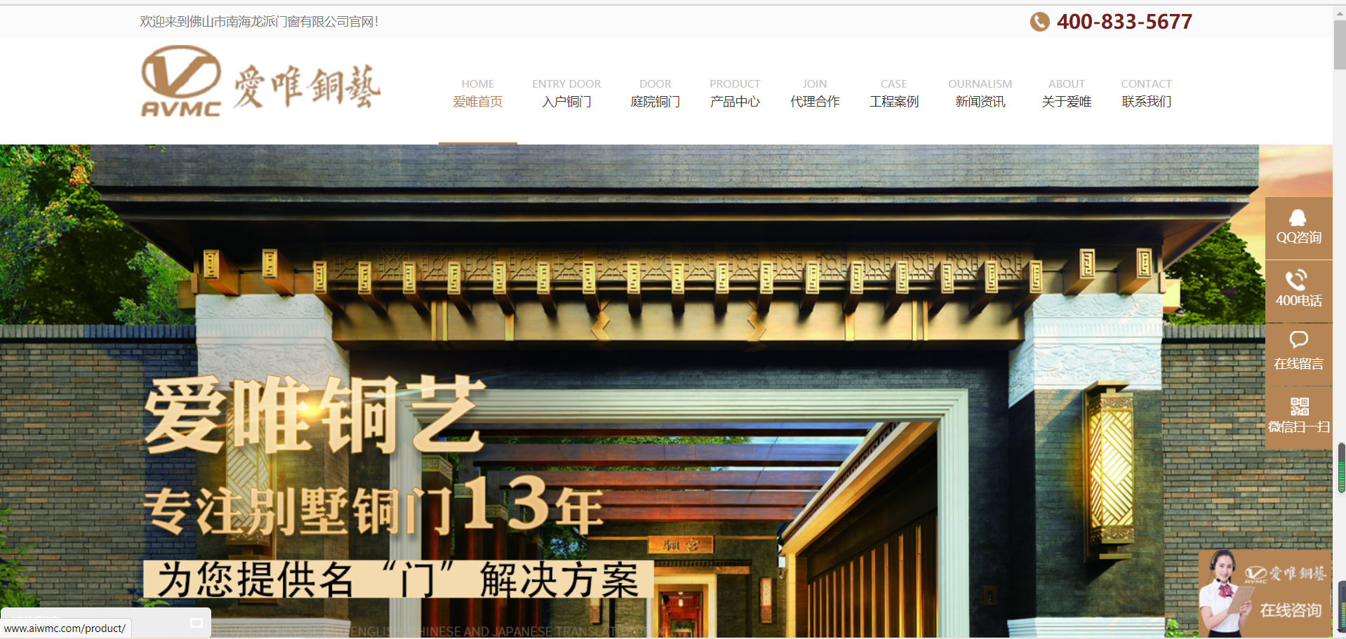 愛唯門窗在成立至今,已開發(fā)出眾多市場認可的產(chǎn)品,平開窗、推拉門、陽光房、涼亭、葡萄架等鋁合金產(chǎn)品應用盡有,為此公司對產(chǎn)品也申請了產(chǎn)品專利并取得各種榮譽證書。針對中高端消費的多元化需求,經(jīng)過兩年的市場調(diào)研,2017年初,愛唯門窗成立“愛唯銅藝”生產(chǎn)部和市場部,銅門、銅樓梯、銅屏風、銅裝飾品等產(chǎn)品陸續(xù)開發(fā)上市。未來公司仍會繼續(xù)了解人們更深層次的需求,同時也會以設計理念為市場帶來更豐富的產(chǎn)品和更舒心的服務。
