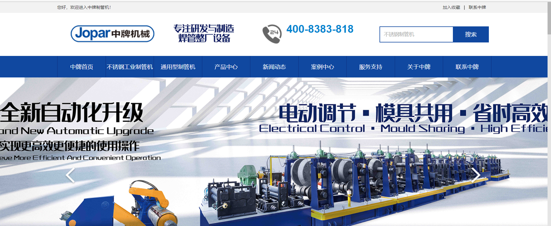 不銹鋼制管機網(wǎng)站建設(shè)案例分享之佛山市中牌機械有限公司