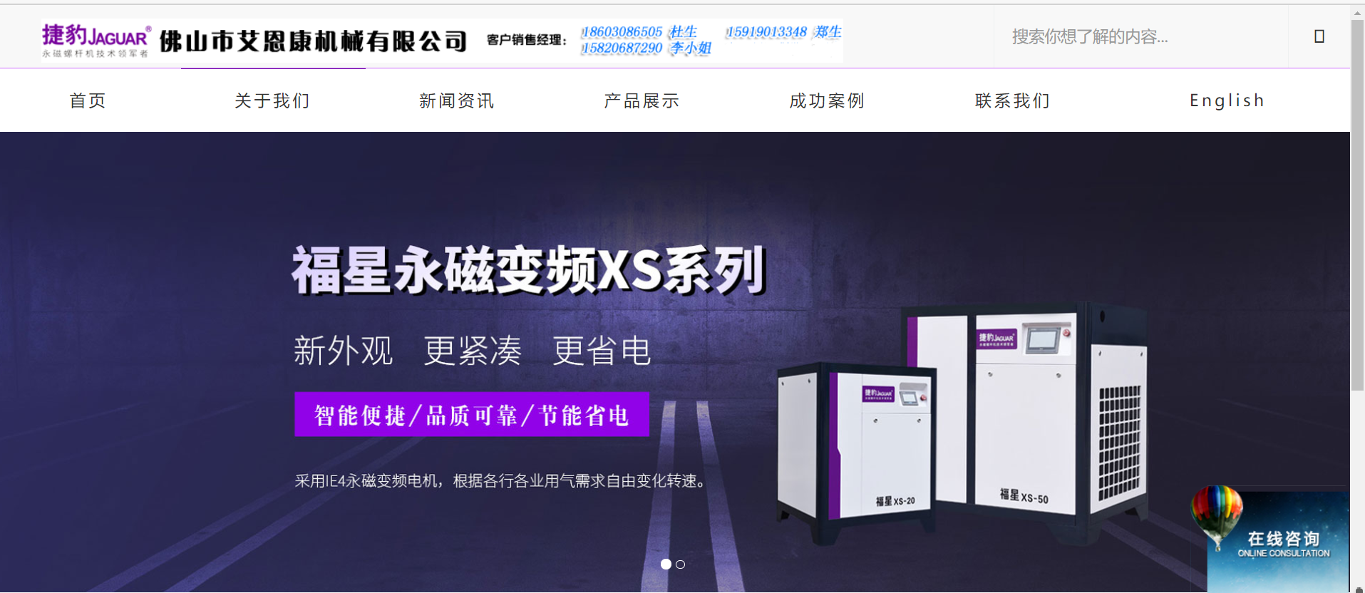 空壓機網(wǎng)站建設(shè)哪家好呢?今天讓我們一起來分享一下空壓機網(wǎng)站建設(shè)案例: 佛山市艾恩康機械有限公司