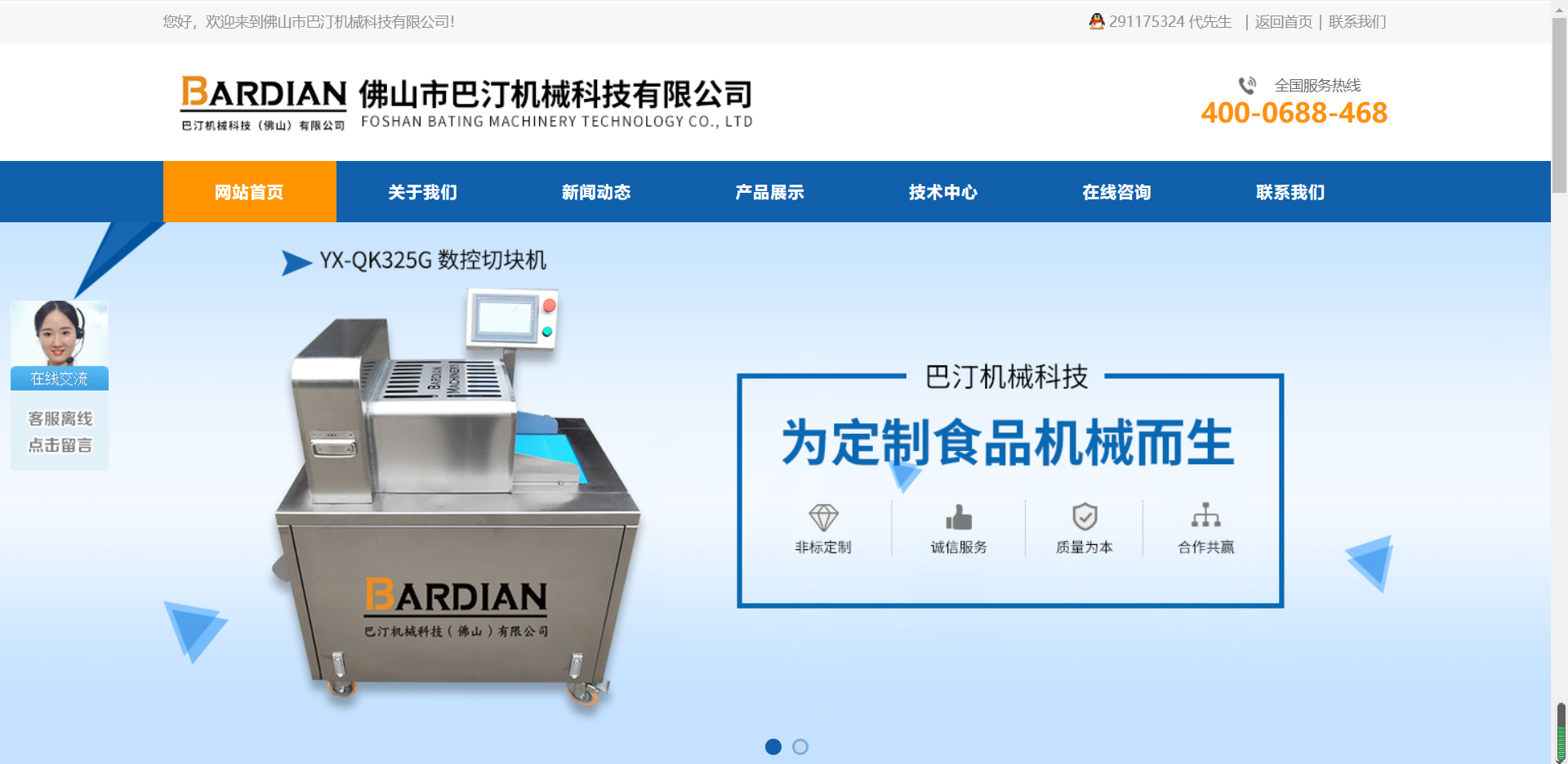 食品加工設(shè)備網(wǎng)站建設(shè)哪家好呢?今天讓我們一起來分享一下食品加工設(shè)備網(wǎng)站建設(shè)案例: 佛山市巴汀機(jī)械科技有限公司