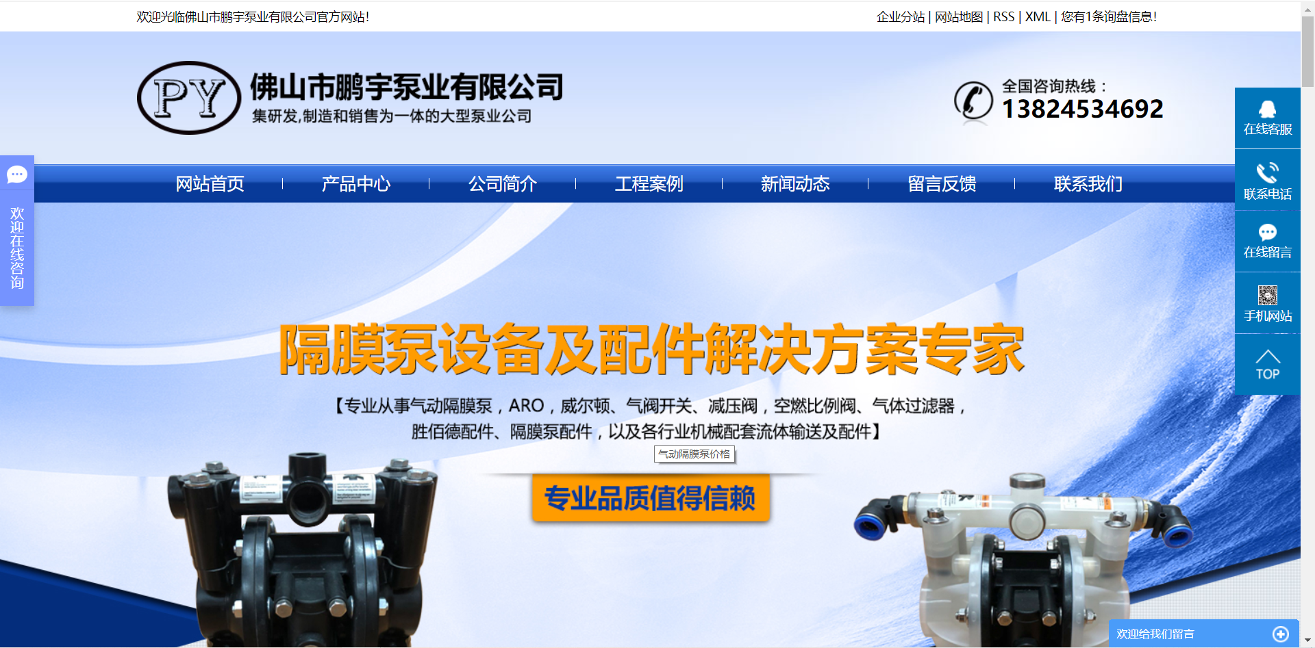 隔膜泵設備網站建設案例分享之佛山市鵬宇泵業(yè)有限公司