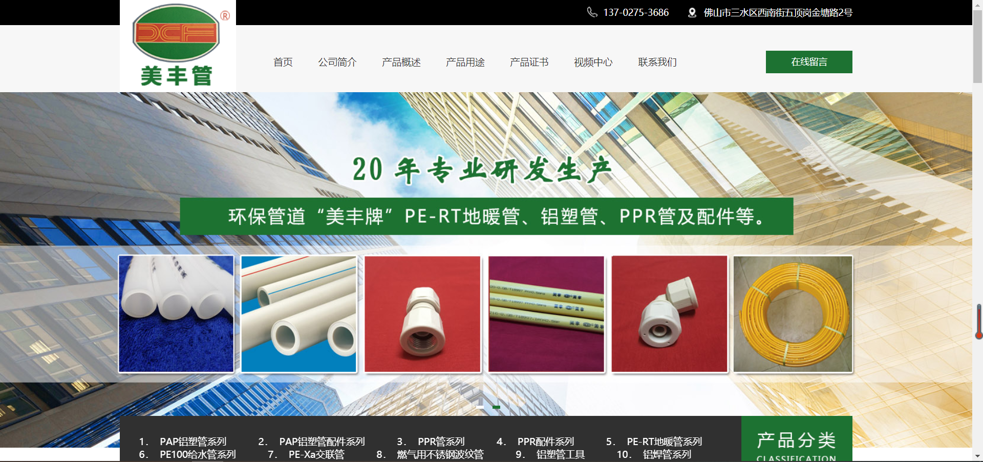 佛山市三水美豐鋁塑復合管有限公司創(chuàng)辦于1999年,工廠坐落于廣東佛山市三水區(qū)西南街五頂崗金塘路2號。用先進的生產(chǎn)技術和設備,專業(yè)生產(chǎn)環(huán)保管道“美豐牌”鋁塑復合管(包括冷熱水用管、燃氣專用管、壓縮氣體輸送管)、專用地暖PE-RT管、工程用PP-R管、PE100燃氣用管和給水管、特殊領域用鋁焊管及(鋁塑管、PERT管)專用塑料合金管件。生產(chǎn)過程嚴格執(zhí)行ISO9001質(zhì)量體系,確保產(chǎn)品達到國家檢測要求并符合歐美先進國家同類產(chǎn)品質(zhì)量標準。