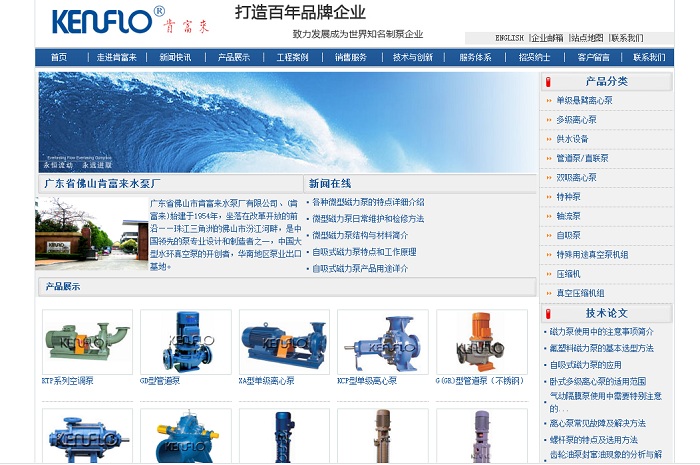水泵網(wǎng)站建設(shè)作品賞析之廣東肯富來泵業(yè)股份有限公司