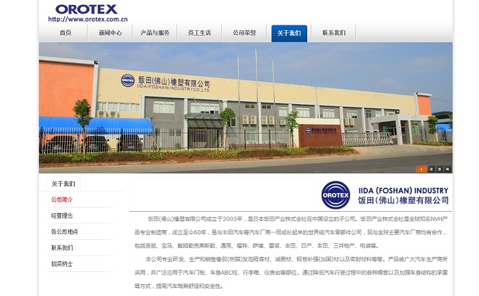 飯?zhí)?佛山)橡塑有限公司成立于2005年,是日本飯?zhí)锂a(chǎn)業(yè)株式會(huì)社在中國(guó)設(shè)立的子公司。飯?zhí)锂a(chǎn)業(yè)株式會(huì)社是全球知名NVH產(chǎn)品專業(yè)制造商,成立至今60年,是與豐田汽車等汽車廠商一同成長(zhǎng)起來的世界級(jí)汽車零部件公司,現(xiàn)與全球主要汽車廠商均有合作,包括奔馳、寶馬、戴姆勒克萊斯勒、通用、福特、薩博、雷諾、豐田、日產(chǎn)、本田、三井物產(chǎn)、電裝等。