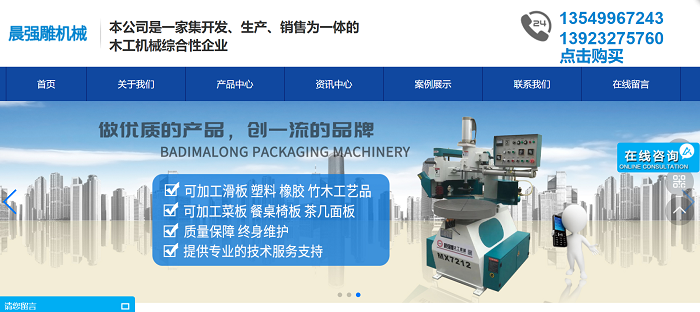 佛山市晨強(qiáng)雕機(jī)械自動(dòng)化設(shè)備有限公司始終堅(jiān)持以科技求發(fā)展.以質(zhì)量求勝出,以誠信求市場為理念.并以先進(jìn)的制造工藝配以高精度的生產(chǎn)設(shè)備生產(chǎn)出性能優(yōu)良的產(chǎn)品。主要產(chǎn)品有自動(dòng)木工仿形機(jī)系列,自動(dòng)木工鏤銑機(jī)系列,木制衣架自動(dòng)化機(jī)械設(shè)備系列。 展望未來,本公司將一如既往地把最實(shí)用的產(chǎn)品,最合理的價(jià)格,最完善的服務(wù),真誠與廣大用戶攜手合作.共同發(fā)展.共創(chuàng)輝煌。