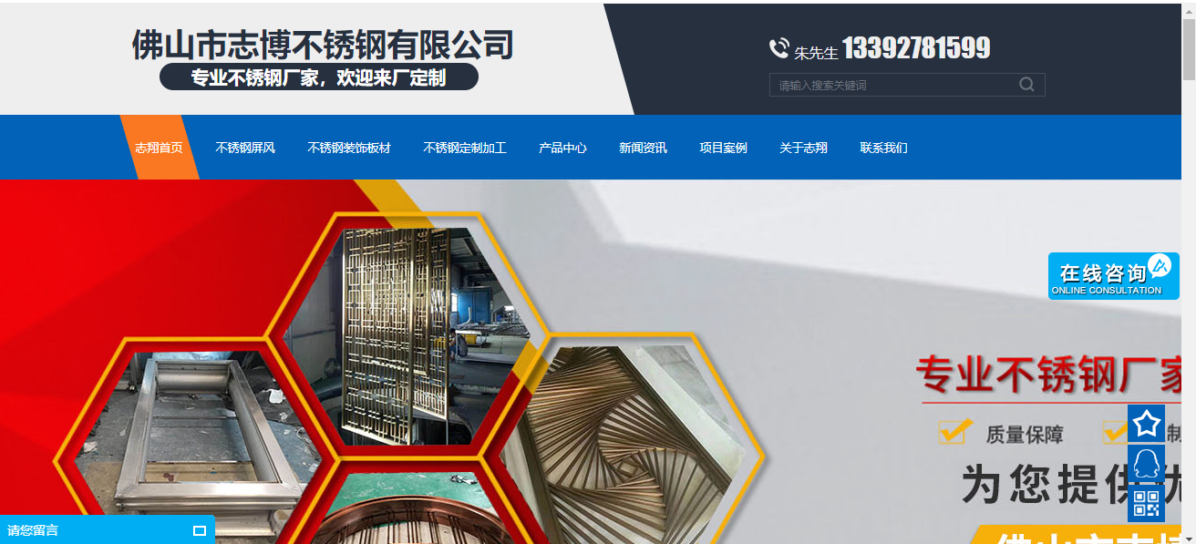 讓我們一起來分享一下不銹鋼屏風網(wǎng)站設計案例:佛山市志博不銹鋼有限公司