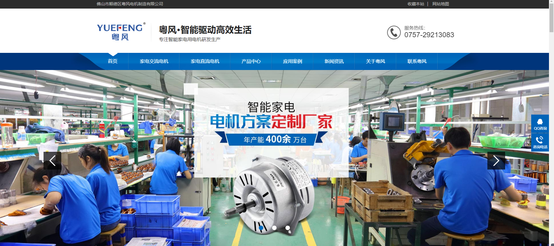今天讓我們一起來分享一下家電交流電機網(wǎng)站推廣案例:佛山市順德區(qū)粵風(fēng)電機制造有限公司,位于廣東省佛山市順德區(qū)容桂華口高新工業(yè)區(qū),是一家集技術(shù)研發(fā)、生產(chǎn)制造、市場營銷為一體的創(chuàng)新型制造企業(yè)。公司總投資達2000多萬人民幣,其中生產(chǎn)設(shè)備檢測儀器投入超過500萬元,主要生產(chǎn)制造交流異步電動機、罩極電機、直流無刷電機,配置多條目前國內(nèi)性能完善的自動化生產(chǎn)線,配備電機測功儀器,熱水器、壁掛爐整機實驗平臺。