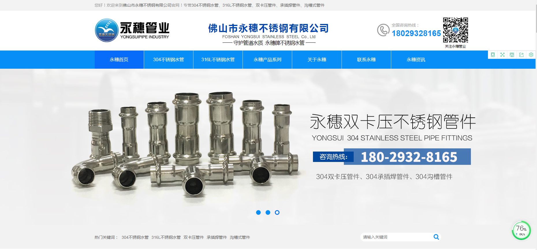“永穗”、“永穗管業(yè)”品牌不銹鋼水管,覆塑不銹鋼水管,發(fā)泡不銹鋼水管,雙卡壓管件,溝槽管件,承插焊管件等產(chǎn)品符合中國GB、美國ASTM、日本 JIS等規(guī)范。被廣泛用于石油、生活供水系統(tǒng),家裝給水系統(tǒng),水務(wù)系統(tǒng),市政供水系統(tǒng),天然氣輸送,采暖供暖,造紙、化工、食品衛(wèi)生、醫(yī)療、裝飾家具等工程,產(chǎn)品遍布中國各大中城市及世界各國。我公司產(chǎn)品嚴(yán)格按照ISO質(zhì)量體系管理產(chǎn)品,并在原材和生產(chǎn)流程上嚴(yán)格把關(guān),確保產(chǎn)品的品質(zhì)經(jīng)過永穗人10年來的辛勤努力,“守護(hù)管道水質(zhì)”的理念以珠三角為核心,輻射全國各地。永穗品牌不銹鋼水管深入千家萬戶,保障居民生活用水全。