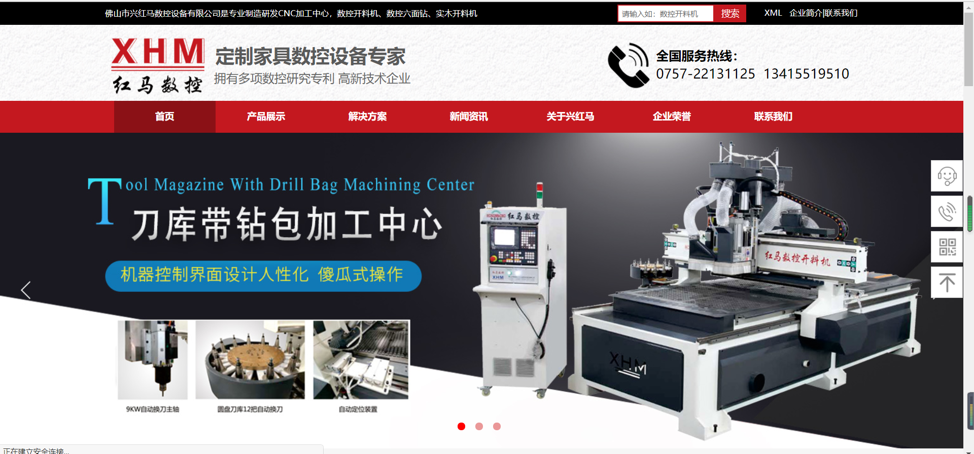 今天讓我們一起來分享一下家具數(shù)控設(shè)備網(wǎng)站推廣作品:佛山市興紅馬數(shù)控設(shè)備有限公司是專業(yè)制造研發(fā)CNC加工中心,數(shù)控開料機(jī)、數(shù)控六面鉆、實(shí)木開料機(jī),公司擁有多項(xiàng)數(shù)控研究專利,致力于數(shù)控設(shè)備CAD/CAM技術(shù)、CNC數(shù)控技術(shù)的研發(fā),在精密數(shù)控開料機(jī)設(shè)計(jì)以及定制家具數(shù)控設(shè)備應(yīng)用工藝技術(shù)方面取得了較豐碩的成果,實(shí)現(xiàn)了數(shù)控技術(shù)向產(chǎn)業(yè)化轉(zhuǎn)化的過程。公司生產(chǎn)的系列數(shù)控開料機(jī),實(shí)木數(shù)控開料機(jī),加工中心,五軸CNC數(shù)控加工中心,數(shù)控五面鉆,六面鉆,數(shù)控側(cè)孔機(jī),已遠(yuǎn)銷歐美等幾十個(gè)地區(qū),牢牢地確立了公司在定制家具行業(yè)的地位。