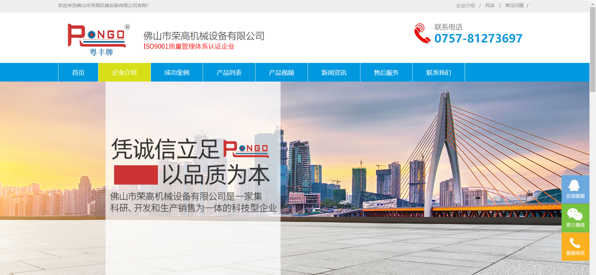 榮高機(jī)械本著質(zhì)量為本,用戶至上的企業(yè)方針,積極從事新產(chǎn)品研發(fā),努力提高產(chǎn)品質(zhì)量和檔次,牢牢抓住服務(wù)至上的原則。生產(chǎn)的“粵豐牌”/“榮高牌”等系列產(chǎn)品贏得了國(guó)內(nèi)外客戶的認(rèn)可,已在業(yè)界有一定的知名度和影響力。竭誠(chéng)歡迎廣大客戶來(lái)電來(lái)信咨詢。