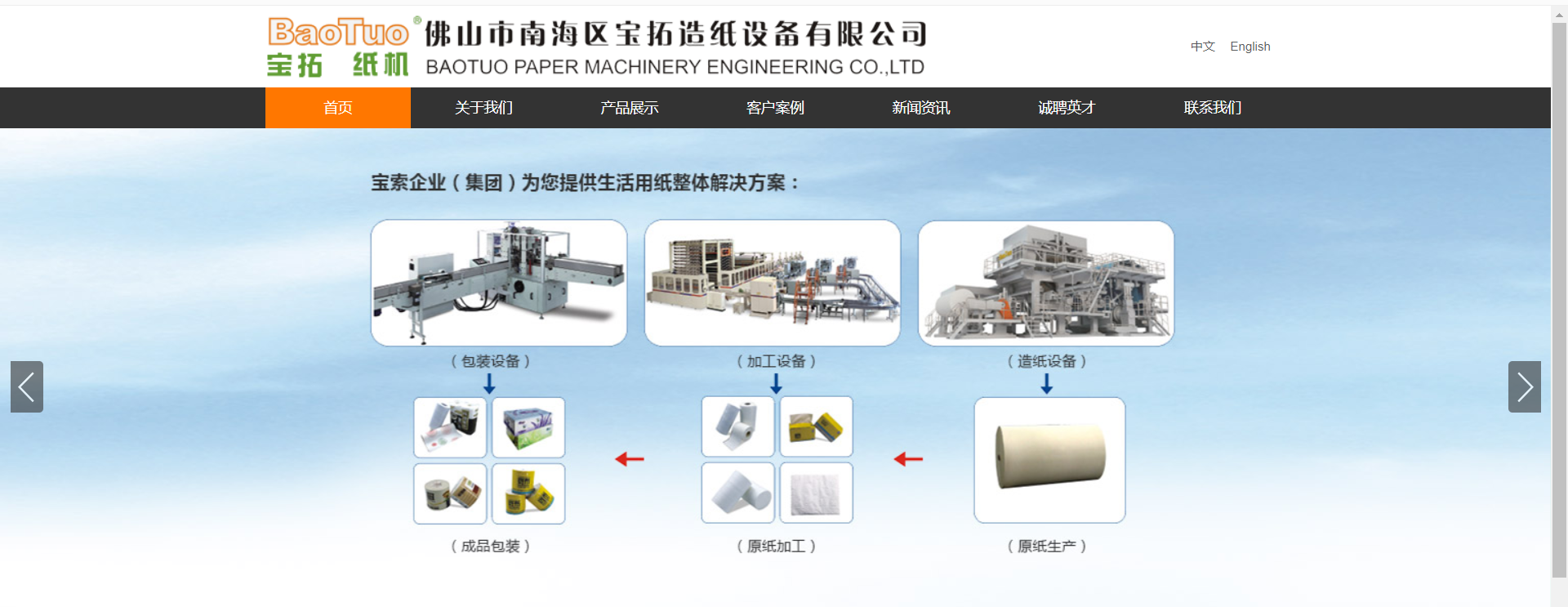 根據(jù)市場(chǎng)需求,寶拓公司依托綜合完善的寶索企業(yè)生產(chǎn)基地,通過(guò)交鑰匙工程,竭誠(chéng)為客戶提供整套生活用紙項(xiàng)目工程解決方案。