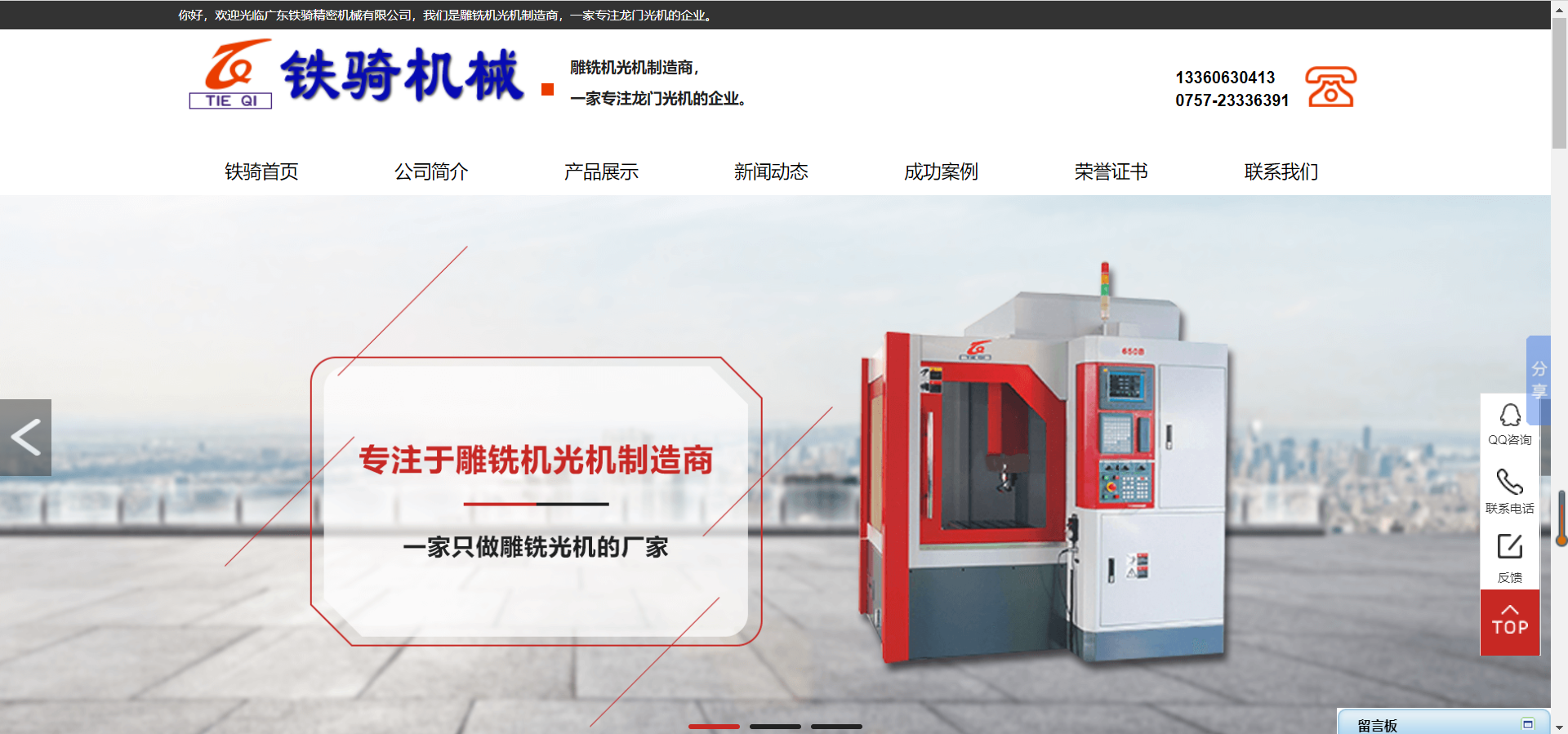 雕銑機(jī)光機(jī)網(wǎng)站建設(shè)哪家好呢?今天讓我們一起來分享一下雕銑機(jī)光機(jī)網(wǎng)站建設(shè)案例:廣東鐵騎精密機(jī)械有限公司