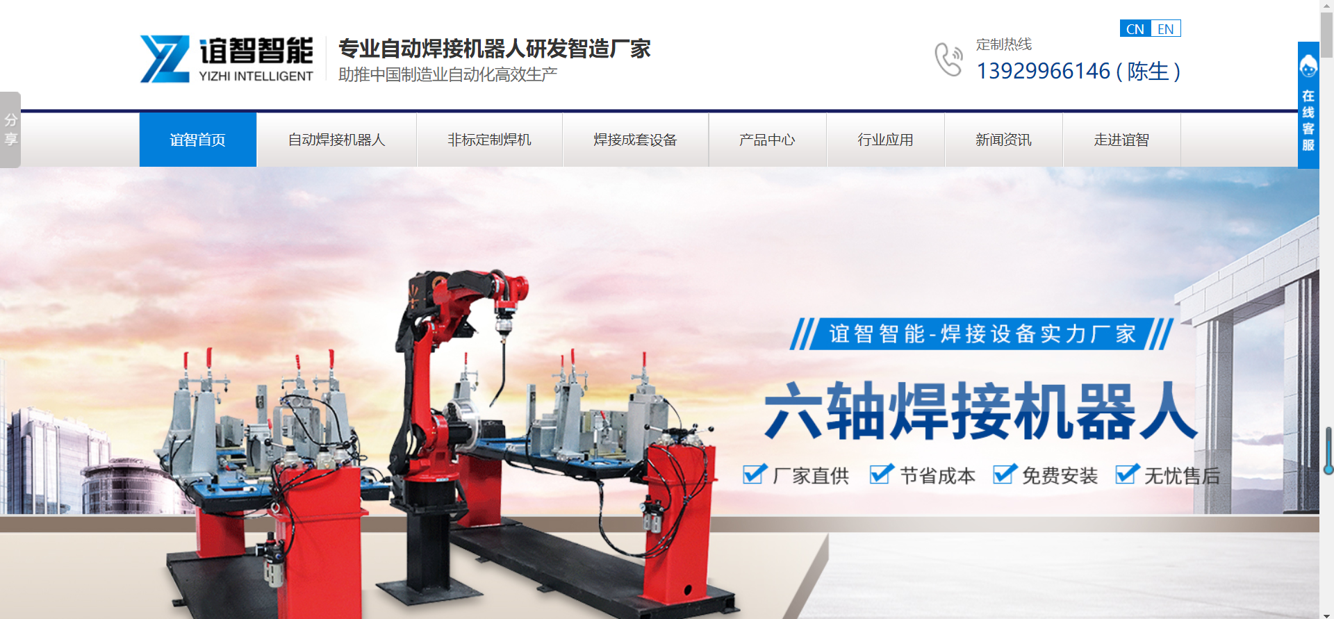 焊接機(jī)器人網(wǎng)站建設(shè)哪家好呢?今天讓我們一起來分享一下焊接機(jī)器人網(wǎng)站建設(shè)案例:佛山市誼智智能機(jī)電設(shè)備有限公司
