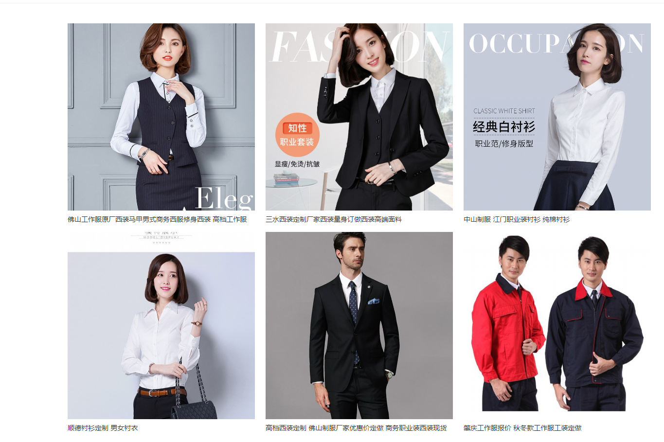 在過 去公司為許多大企業(yè),佛山工作服事業(yè)單位,學校,酒店,賓館,定制了不同檔次級別的服裝。公司以良好的品質(zhì),為客戶供應(yīng)工作服,職業(yè)裝,精品 襯衣,T恤衫,床上用品,及相關(guān)飾品系列。十多年來,我們將繼續(xù)為你提供更優(yōu)質(zhì)的服務(wù)。 佛山工作服,佛山制服,佛山職業(yè)裝,西裝襯衫,廣告衫,T恤衫,酒店制服,醫(yī)療衛(wèi)生服,物業(yè)管理佛山制服 服務(wù)質(zhì)量: 統(tǒng)一的服裝方便管理,還能體現(xiàn)公司的團結(jié),提高工作效率,增強客戶對員工的認可和企業(yè)的信任。繡上LOGO更能體現(xiàn)公司的實力。你只需要一個電話,我們將提供一條龍服務(wù),協(xié)助選料,免費打樣,送貨上門!